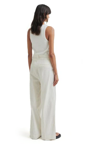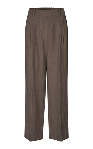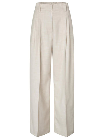 Second Female wide-leg trousers. The trousers are made in a fabric blend with linen texture. Featuring a concealed zip, hook and button closure at the front and elasticated section at...