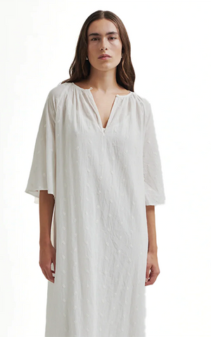 Second Female cotton maxi dress. The dress is made in light and airy cotton with tonal embroidered pattern. Featuring a keyhole opening at the neck with button fastening. Cropped raglan...