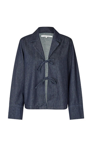 Second Female denim shirt with ties. The shirt is made in dark blue cotton denim with tonal stitching. Featuring a lapel collar and two sets of ties that fasten in...