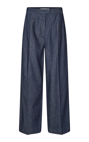 Second Female pleated denim trousers. The trousers are made in dark blue cotton denim with tonal stitching. Featuring a concealed hook, button and zip fastening. Pleats at front. Two slanted...